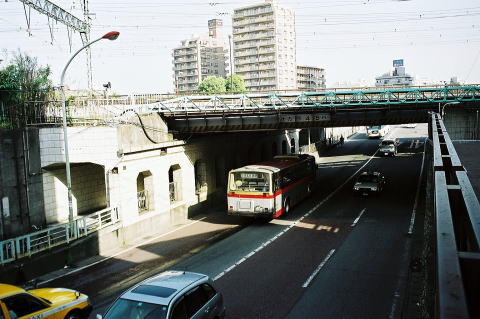 川崎駅バスターミナルから発車後、繁華街を抜けて五反田に向かいます。陸橋からの撮影なので屋根上の様子も見れます。