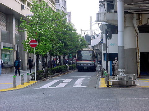 京急川崎駅から狭隘な道路を抜けてバスターミナルに侵入します。 |
