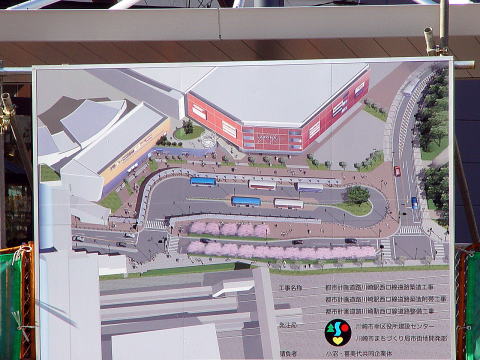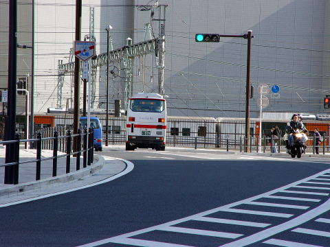 画像の右手が新しいバスターミナルです。この坂の途中には、ラゾーナの駐車場の入口があり渋滞なるとバスターミナルへの進入が大変そうです。 |