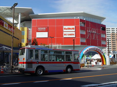 ラゾーナにあるビックカメラをバックに一枚。この日は環境に関するイベントが開催されており、バスターミナルの中へは入っていきませんでした。 |