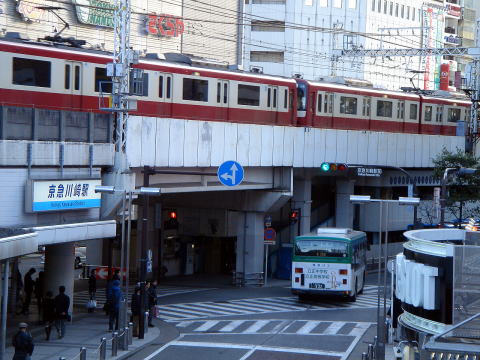 京急川崎駅前での一枚ですが、電車とバスの組合せは、どちらも本数が多いのになかなかタイミングがあいません。かろうじて撮影できた一枚です。 |