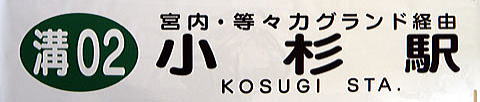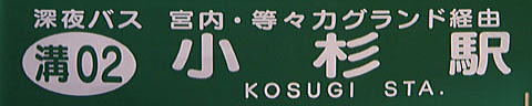 深夜に数本(1本?!)あった、かつての杉08のような路線の方向幕。無系統で小杉駅のみの表示です。