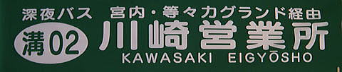 東芝小向工場→川崎駅で、側面には途中停留所がないことから直行の深夜バスの幕ということになります。 |