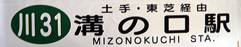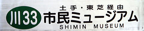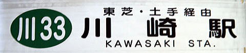 東芝前→川崎駅の幕です。通常の経由地表示から東芝の文字をとったものです。 |