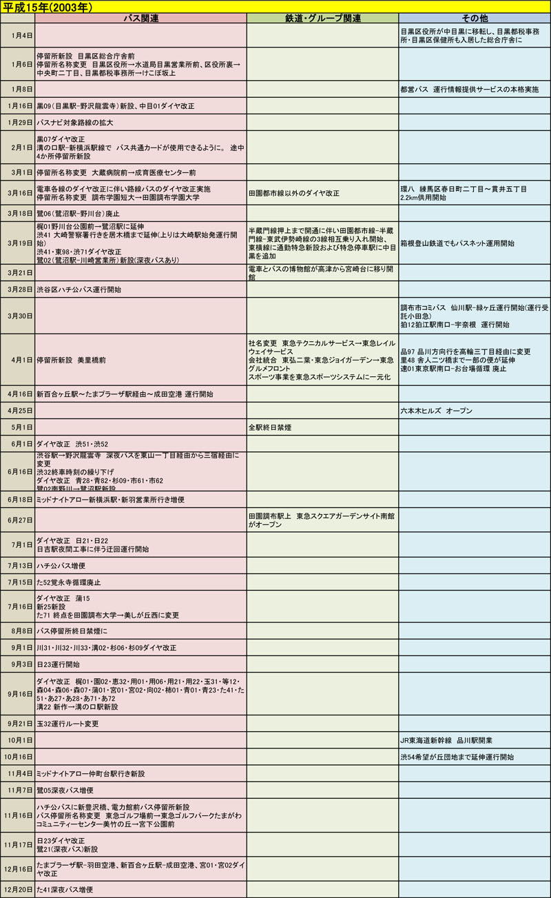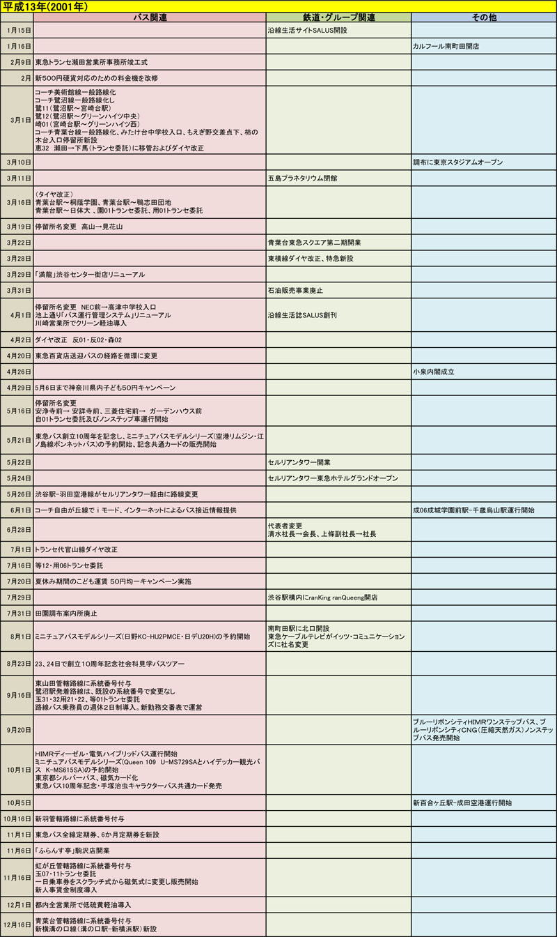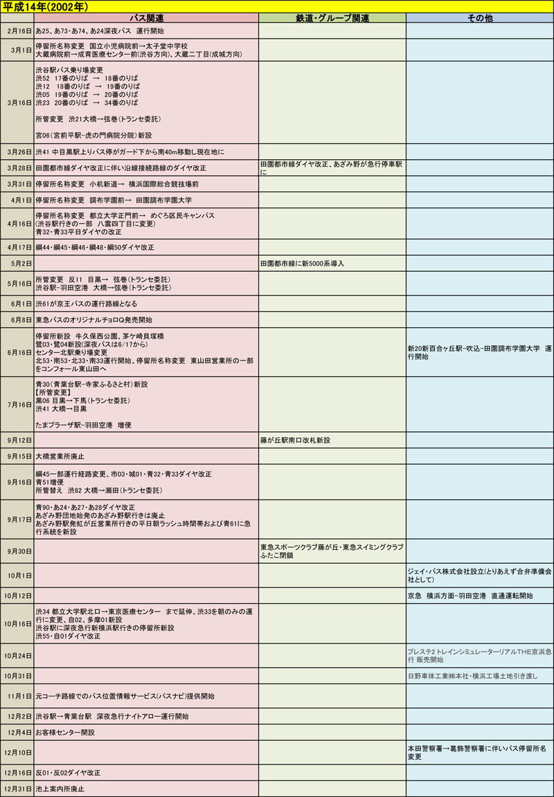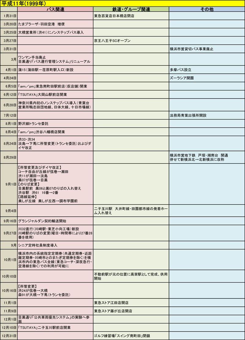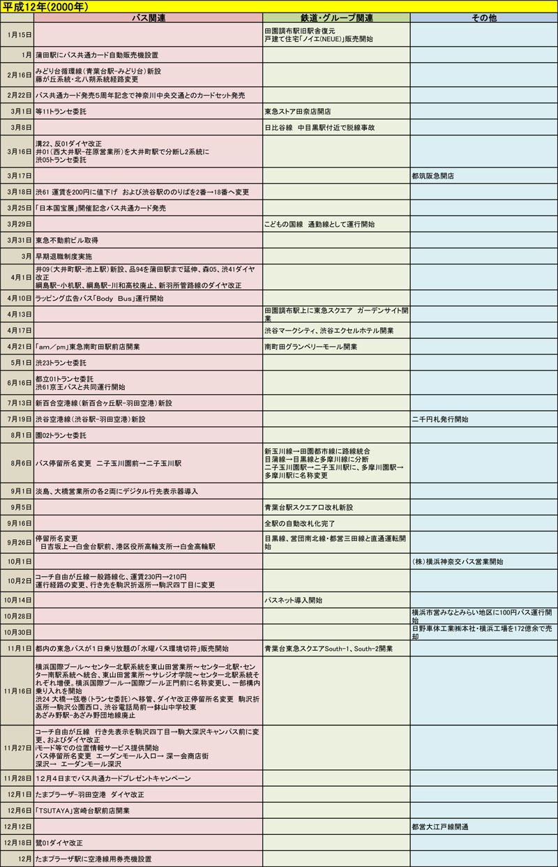 東急バスに関する歴史年表