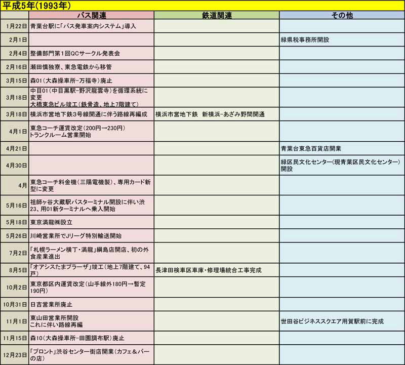 平成元年(1989年)〜5年(1993年)の主な出来事
