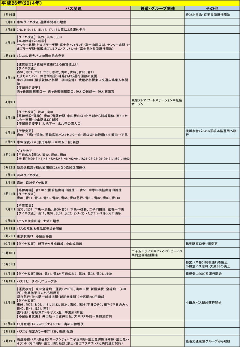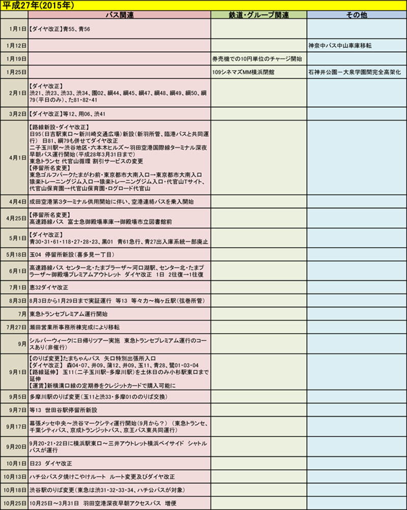 東急バスに関する歴史年表