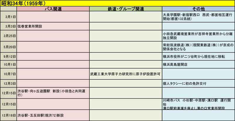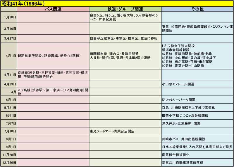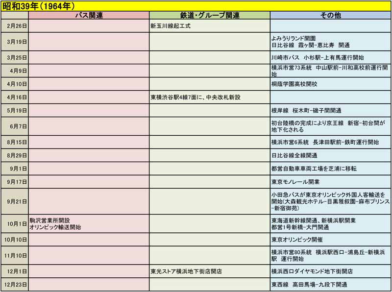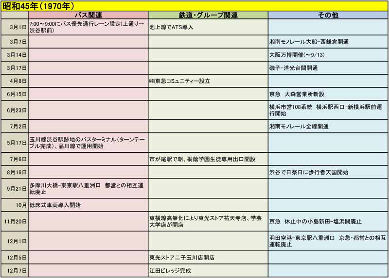 東急バスに関する歴史年表