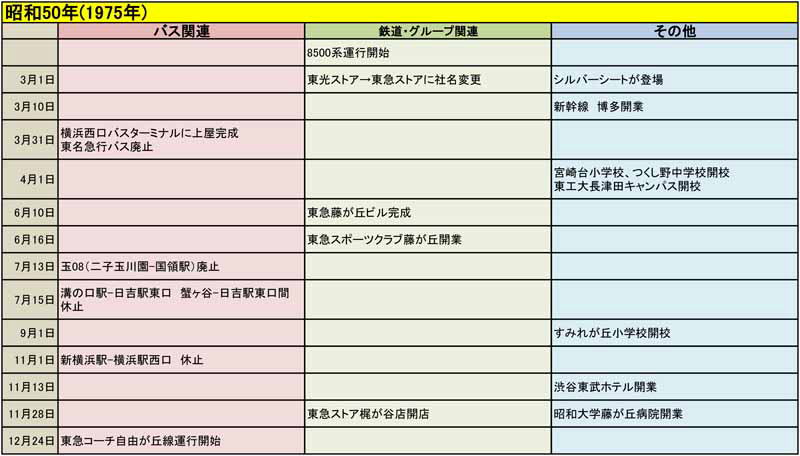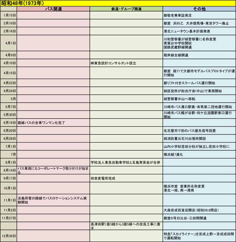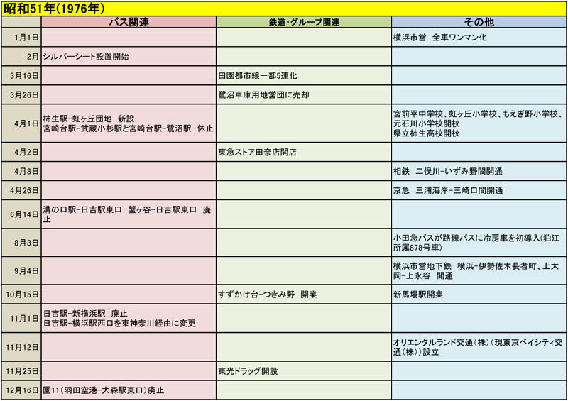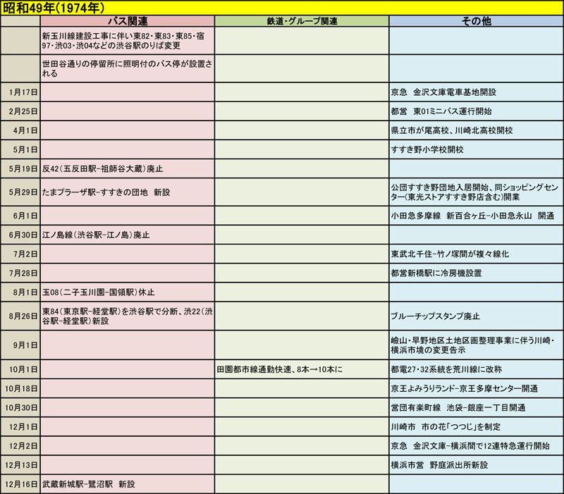 東急バスに関する歴史年表