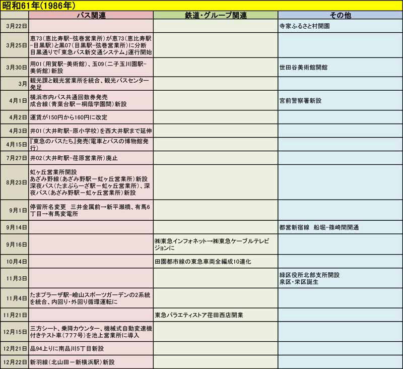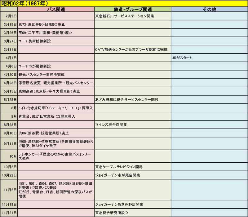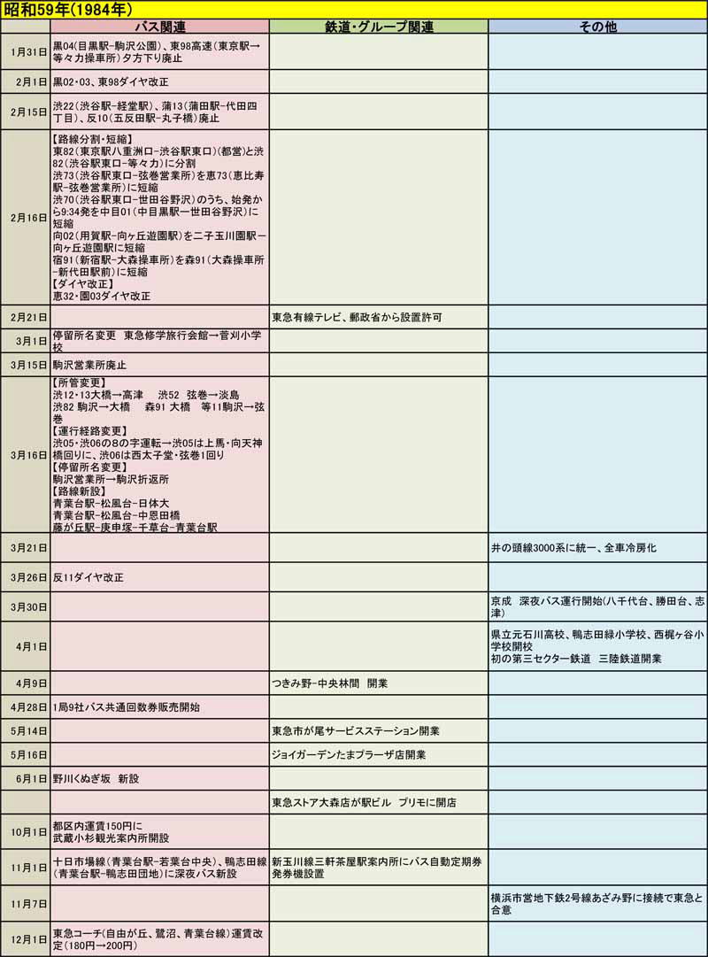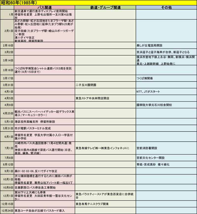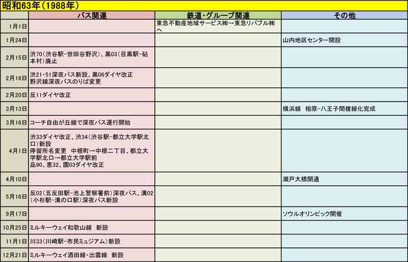 東急バスに関する歴史年表