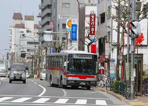 雪が谷を出発し、多摩01・渋33と合流し、中原街道を直進します。 |