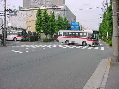 こちらは、事務所棟のある車庫から渋谷方面の出庫をする渋72です。現在は、営業所に柵がつけられたためもう少し事務所棟よりからの出庫となります。