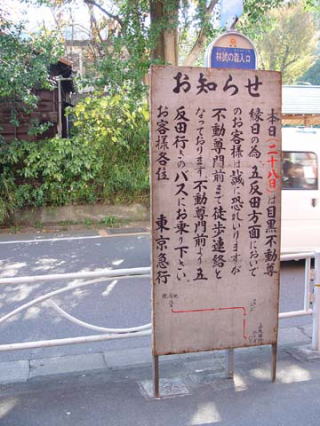 かむろ坂付近に掲出されている看板です。縁日開催時は、この先から通行止めです。