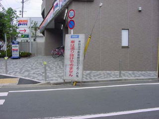 林試の森入口に掲出される徒歩連絡のお知らせ看板です。