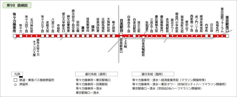 大幅減便、東京駅南口〜等々力操車所は朝夕のみの運行に変更、等21を新設し、乗り継ぎ割引サービス開始 |