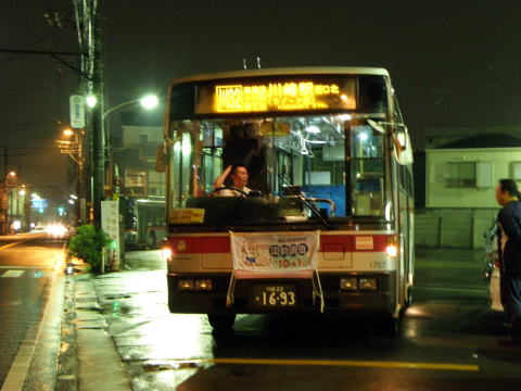 最終日のみ、2台の車両に「さようなら 川崎営業所」の垂れ幕がつけられていました。