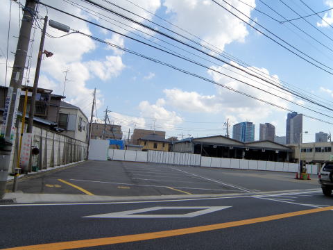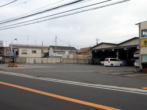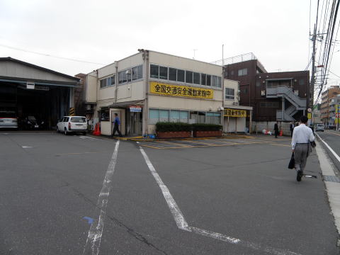 うしろの塀には、事務所横の通路が10月1日から使用できなる旨の案内が掲出されています。 |