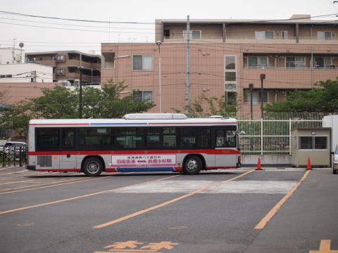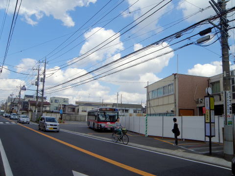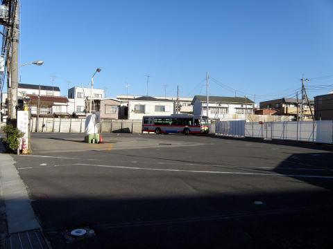 折り返しは、元川崎営業所の敷地が仮囲いがされ半分の大きさになりましたが、広々と折り返しを行なっていました。 |
