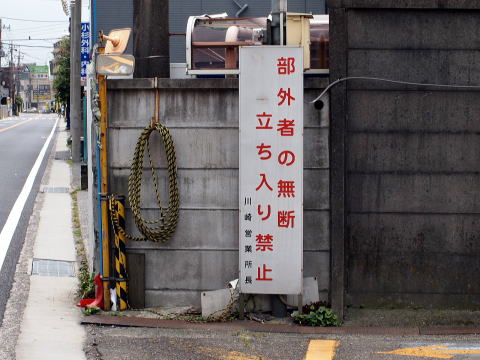 折返所には、立入禁止の看板がありましたが、「川崎営業所所長」の文字が残っており、約1年弱の間、川崎営業所の香りが残っていました。 |