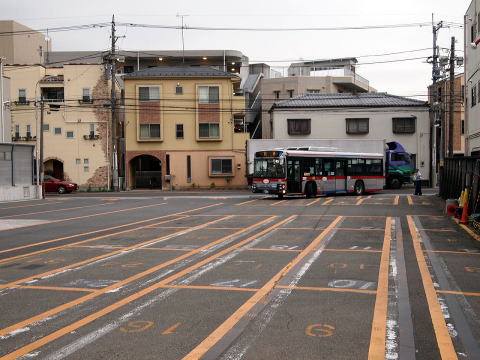 川崎営業所が廃止された直後の様子です。当初は、小杉折返所も川崎営業所が営業していた時代と同じく、元営業所の敷地で折り返しを行なっていました。 |