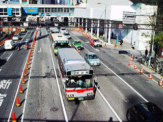 東口のバスターミナルに侵入する渋71。後に写るは、渋谷警察署。このあたりは、もうすぐ渋谷駅なのに渋滞ポイントであるため、結構時間を要するときがあります。 |