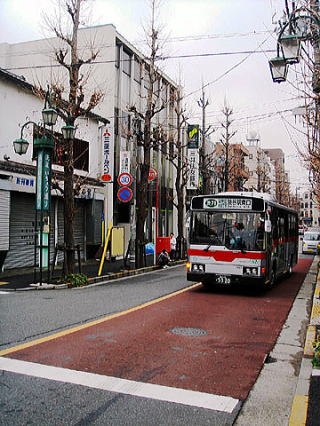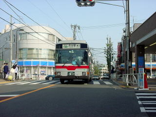 | いちょう通りを通過し、洗足駅のバス停に入るため右折します。 |