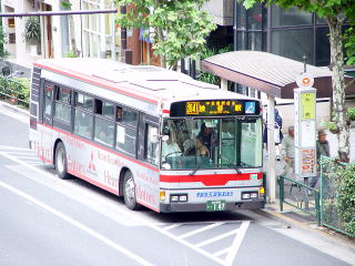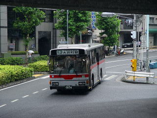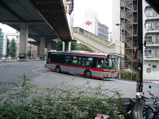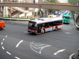 大橋時代は、東急バス本社の下から出入庫していました。画像は、渋谷方面に出庫する渋41です。 |