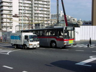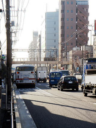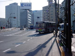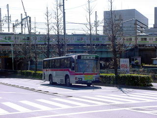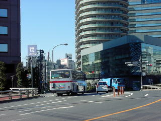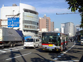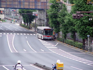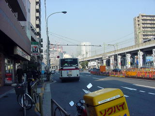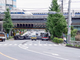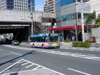 第一三共前のバス停を過ぎ渋谷に向かいます。後には山手線が見えますが、京浜東北線や新幹線などのガードをくぐります。 |