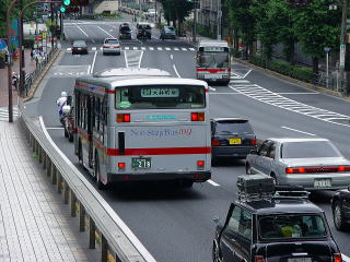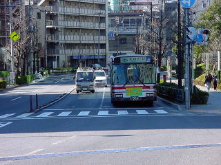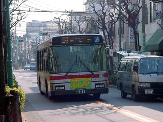 渋谷方向は、ゼームス坂を下り品川銀座、南馬場を抜けていくルートとなります。品川神社の祭礼時には、青物横丁経由の迂回運行となります。 |