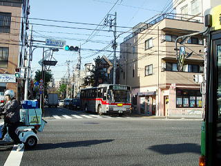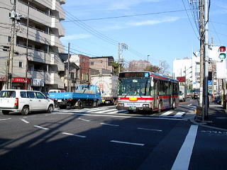新馬場駅前の交差点を曲がり国道15号線に入ります。ここからは都営バスや品94と合流します。画像左手には、品川区保健センター、右手には品川区医師会があります。 |