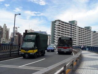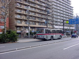| 目黒川を渡る渋41。この付近は、会社などが集まっています。 |