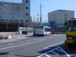 | JRの線路を越える陸橋を渡る渋41の風景です。画像右手にあった住宅展示場も今ではすっかりマンション群と化しています。 |