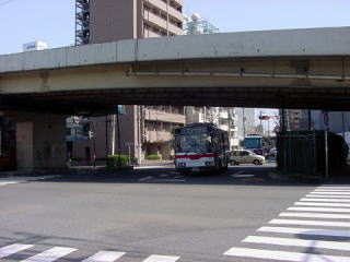 | 渋谷に向かうため、中原街道の陸橋をくぐる渋72です。この先、五反田までは、反11と併走します。 |