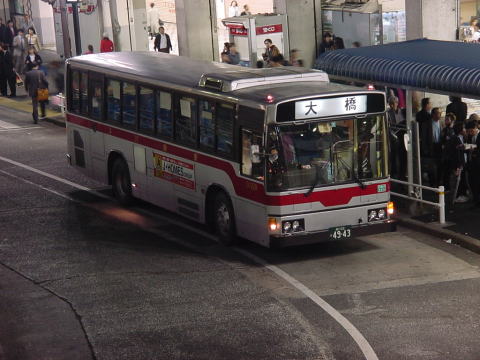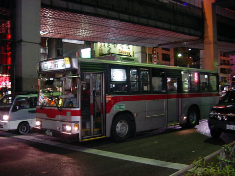 渋21松蔭線は、かつて大橋営業所の所管でしたが、営業所廃止に伴う路線移管で弦巻営業所の所管になりました。路線移管される前日の平成14年3月15日に撮影した画像でその様子を振り返ります。 画像は、終バス近くのものです。渋谷駅での様子だけですが雰囲気を味わっていただければと思います。一番下の画像は、この再編に伴い渋谷駅バスターミナルの渋23の発着位置が渋21と同じになったため、その対応をした風景です。終バス後の深夜の様子です。 弦巻営業所に移管されたことにより、大橋ゆきは廃止となり新たに桜小学校ゆきが設定されました。また、渋23系統との共通運用化、深夜バスの増強などが実施されています。