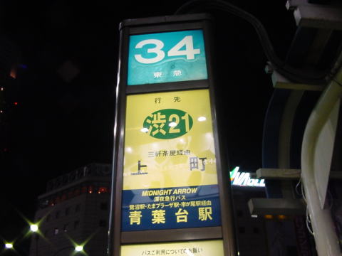 渋谷駅の34番ポールです。現在は、渋23と共用となっているため、渋21単独のものは過去のものとなっています。またこの頃から、出発のLED表示も設置されているので、さらに雰囲気も変わっています。